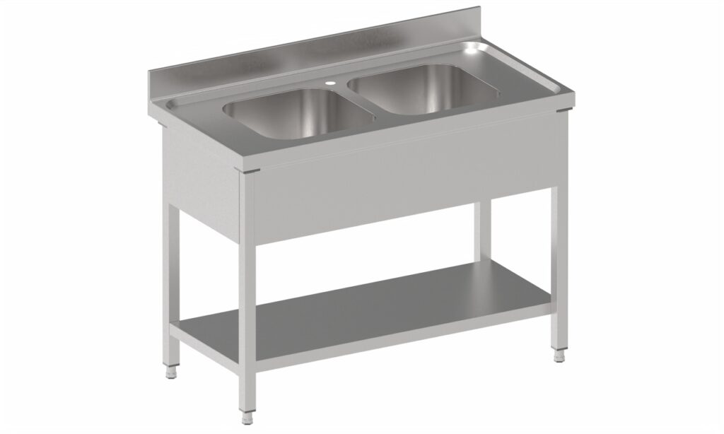 The sink structure is reinforced with omega profiles made of 1 mm thick AISI 304 stainless steel sheet, which guarantees exceptional stability and durability. The sink base can be with or without a lower shelf, depending on the needs of the space. The lower shelf is made of 0.8 mm thick stainless steel sheet and is reinforced with omega profiles, which achieves additional strength and stability.