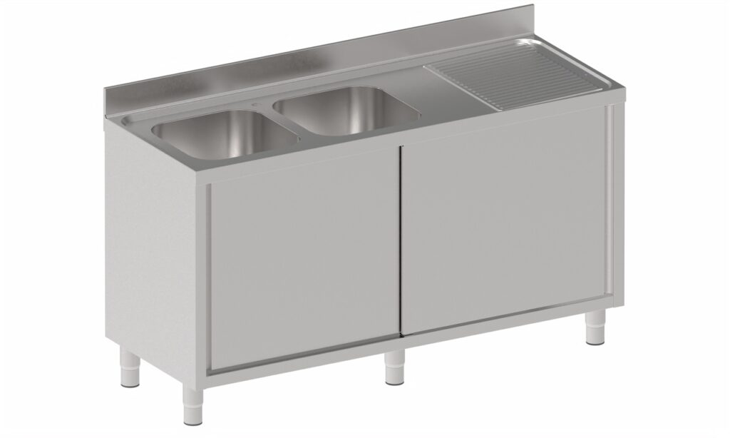 Sudoper zatvoren kliznim ili šarnirnim vratima savršen je izbor za profesionalne kuhinje i industrijske prostore gdje je potrebna izdržljivost, organizacija i dugotrajna funkcionalnost. Izrađen je od nehrđajućeg čeličnog lima AISI 304 debljine 1 mm, što mu pruža iznimnu otpornost na koroziju i jednostavno održavanje u zahtjevnim radnim uvjetima.