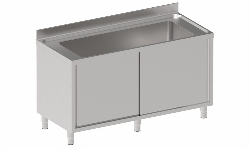 Sudoper zatvoren kliznim ili šarnirnim vratima savršen je izbor za profesionalne kuhinje i industrijske prostore gdje je potrebna izdržljivost, organizacija i dugotrajna funkcionalnost. Izrađen je od nehrđajućeg čeličnog lima AISI 304 debljine 1 mm, što mu pruža iznimnu otpornost na koroziju i jednostavno održavanje u zahtjevnim radnim uvjetima.