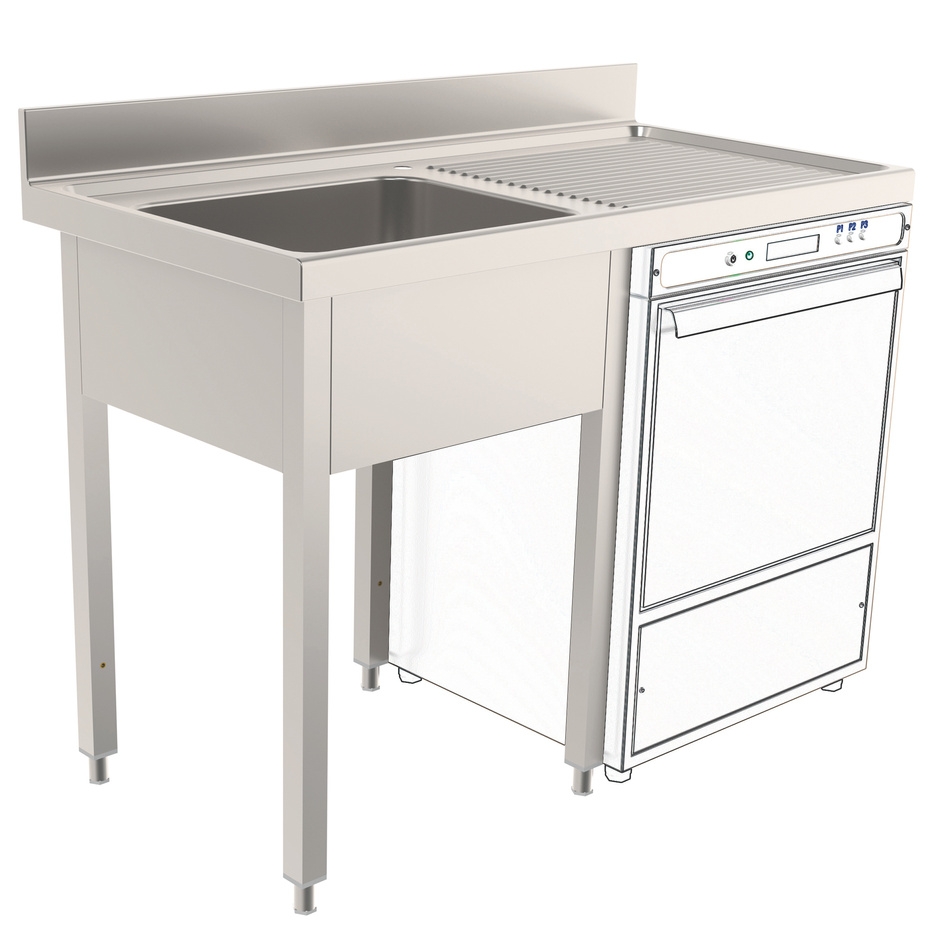 Otvoreni sudoper s nadstrešnicom za stroj idealan je za profesionalne kuhinje i industrijske prostore gdje je potrebna visoka funkcionalnost, jednostavan pristup i učinkovito korištenje prostora. Ovaj sudoper izrađen je od lima od nehrđajućeg čelika AISI 304 debljine 1 mm, što mu pruža iznimnu otpornost na koroziju i jednostavno održavanje, što ga čini savršenim za korištenje u zahtjevnim radnim uvjetima.